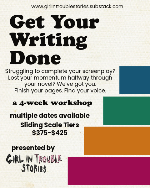 We believe that we’re always learning and growing together. Whether you’re writing short form, long form, or for the stage or screen, Girl In Trouble Stories has educational offerings to help take your project to the next level.